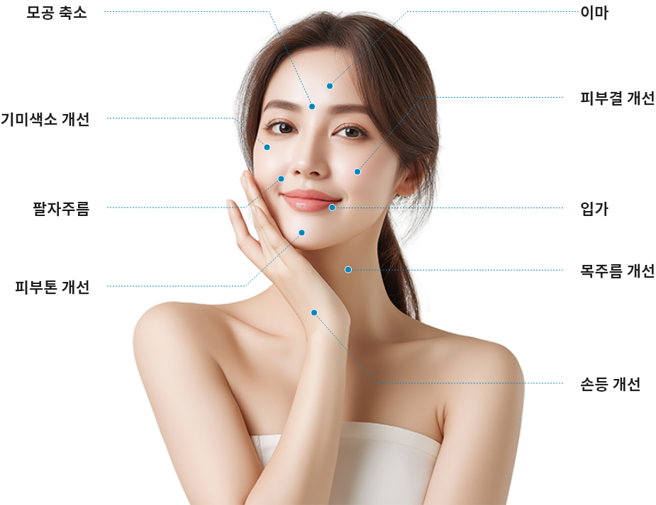 A. 얼굴전체, 목, 손등 등 다양한 부위 시술이 가능합니다.